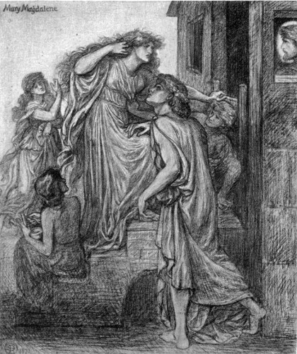 Somewhat akin in spirit (though less dramatic in treatment), in that it deals with the problem of sexual love in its darkest form, is the rhymed monologue entitled “Jenny;” and put into the mouth of one who has followed, half in pity, half in curiosity, a beautiful courtesan to her home, and sits with her in the luxurious chamber which is the purchase of her shame. The poem is to some extent in obvious relation to Rossetti’s long contemplated but never completed picture, “Found;” but the latter shows the end of poor Jenny in after years,—