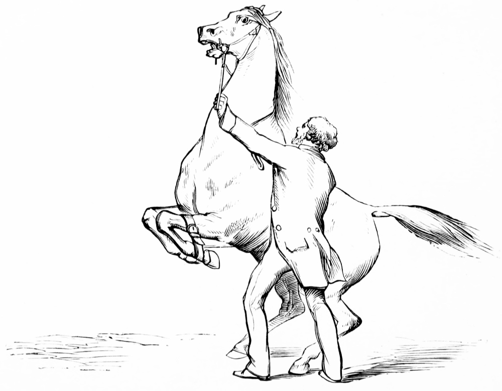 I wish the reader to observe, that in explaining the operation of the secret of gentling a horse, I have always supposed the horse to be one that required the whole secret, in order to be gentled,{9} though a man meets with many that do not require one-third of what I there lay down: but it is better to do too much than too little in this case, so I shall say no more about it here. Vale, ya es tarde, buenas noches tenga usted senor caballero.