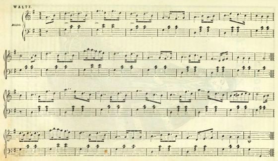 Have your piano-forte tuned, at least four times in the year, by an experienced tuner; if you neglect it too long without tuning, it usually becomes flat, and troubles a tuner to get it to stay at concert pitch, especially in the country. Never place the instrument against an outside wall, or in a cold, damp room. Close the instrument immediately after your practice; by leaving it open, dust fixes on the sound-board and corrodes the movements, and, if in a damp room, the strings soon rust.