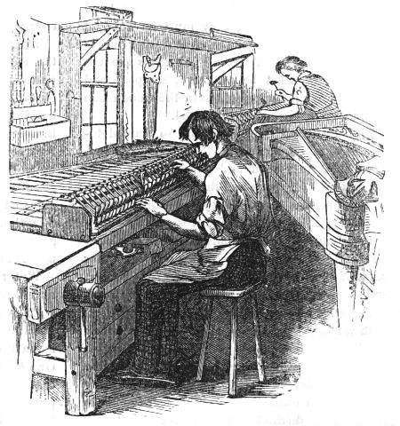But several operations we have purposely passed by, as it was our wish to give a clear idea of the structure of the piano-forte by exhibiting, from stage to stage, the progress of the manufacture of the musical machinery. Let us now look after the construction of the other parts of the instrument.