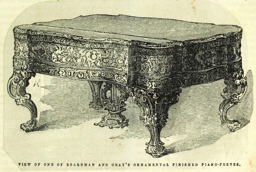 VIEW OF ONE OF BOARDMAN AND GRAY'S ORNAMENTAL FINISHED PIANO-FORTES.
