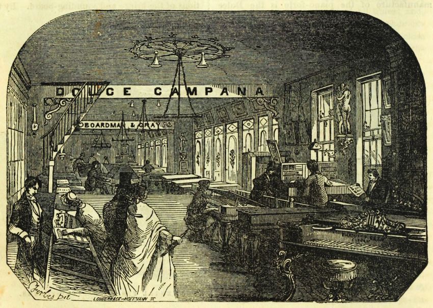 Their store is always open to the public, and constantly thronged with customers and visitors, who meet with attention and courtesy from the proprietors and persons in attendance. We would advise our readers, should business or pleasure lead them to the capital of the Empire State, to call on Messrs. Boardman & Gray at their ware-rooms, even though they should not wish to purchase anything from them; for they may spend an hour very pleasantly in examining and listening to their beautiful and fine-toned piano-fortes with the Dolce Campana Attachment.