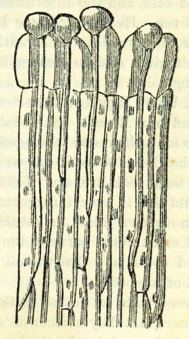 Cloth is used for a variety of purposes in the establishment of Messrs. Boardman & Gray. It is made and prepared expressly for their use, from fine wool, of various thicknesses and colors, according to the use for which it is designed. Whether its texture be heavy or thick, firm or loose, smooth or even, soft or hard, every kind has its peculiar place and use. Here we would give a word of caution to the reader. So much cloth is used in and about the action of the piano-forte, that we must beware of the insidious moth, which will often penetrate and live in its soft folds, thereby doing much damage to the instrument. A little spirits of turpentine, or camphor, is a good protection against them.