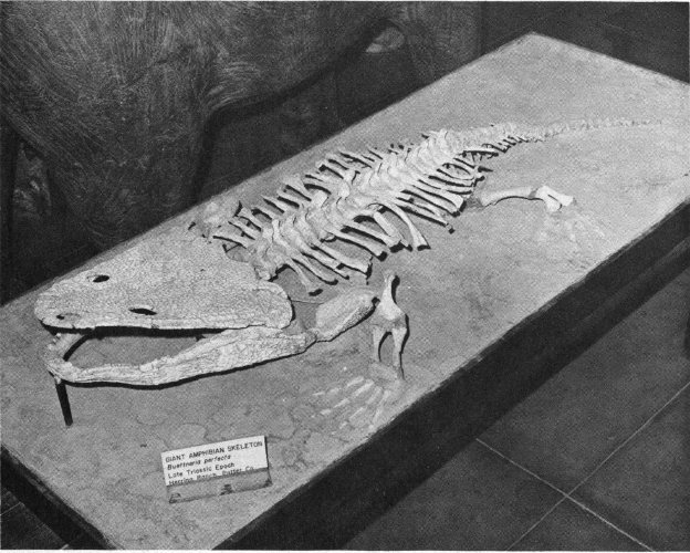 Fig. 13. The skull of this crocodile-like creature called a phytosaur is typical of the reptiles that inhabited the Palo Duro area during the Triassic Period. (Photograph courtesy Panhandle-Plains Historical Museum.)