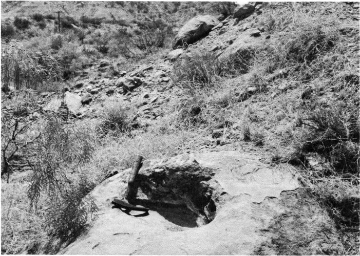 Fig. 11. This boulder, located near the foot of Triassic Peak along the Sad Monkey Railroad track, exhibits the cross-bedding typical of the Trujillo sandstones.