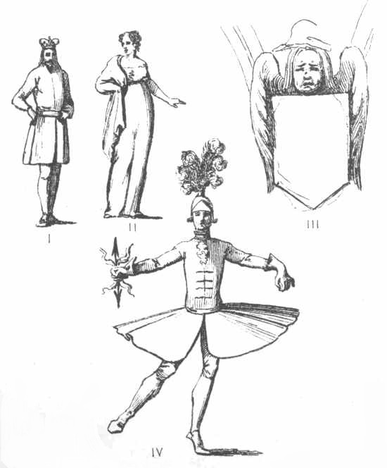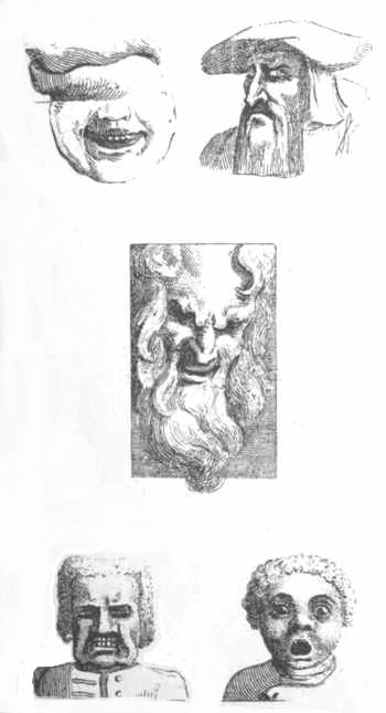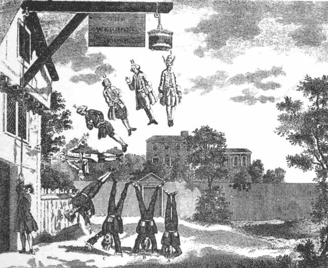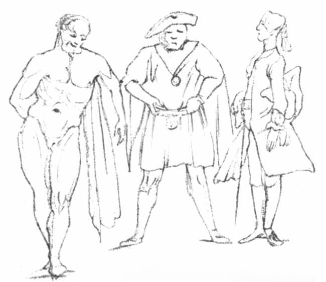 [103] Hogarth has introduced these three figures in rather a better style, in his print of "The Small Masquerade Ticket, or Burlington Gate."