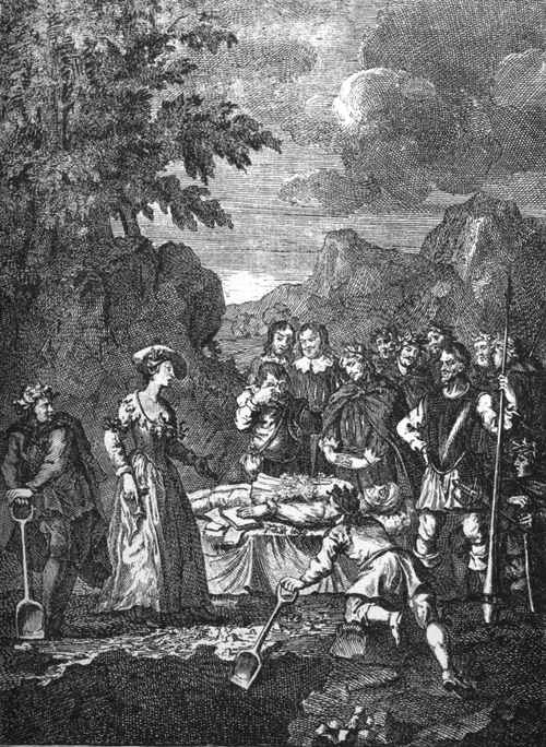 Hogarth made a very whimsical design for Fielding's tragedy of tragedies, Tom Thumb the Great. It was engraved by Vandergucht, and is prefixed to the play published by Lowndes, etc.