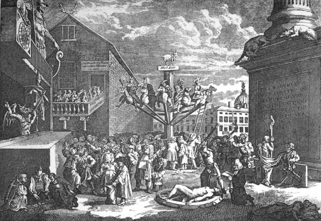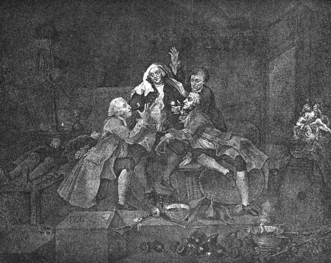 "Sir,—When genius is made subservient to public good, it does honour to the possessor, as it is expressive of gratitude to his Creator, by exerting itself to further the happiness of His creatures. The poignancy and delicacy of your ridicule has been productive of more reformation than more elaborate pieces would have effected. On the apprehension of opening the distillery, methinks I hear all good men cry, Fire!—it is therefore the duty of every citizen to try to extinguish it. Rub up, then, Gin Lane and Beer Street, that you may have the honour and advantage of bringing the two first engines to the fire; and work them manfully at each corner of the building; and instead of the paltry reward of thirty shillings allowed by Act of Parliament, receive the glorious satisfaction of having extinguished those fierce flames which threaten a general conflagration to human nature, by pouring liquid fire into the veins of the now brave Britons, whose robust fabrics will soon fall in when these dreadful flames have consumed the inside timbers and supporters.—I am, Sir, yours, etc.,