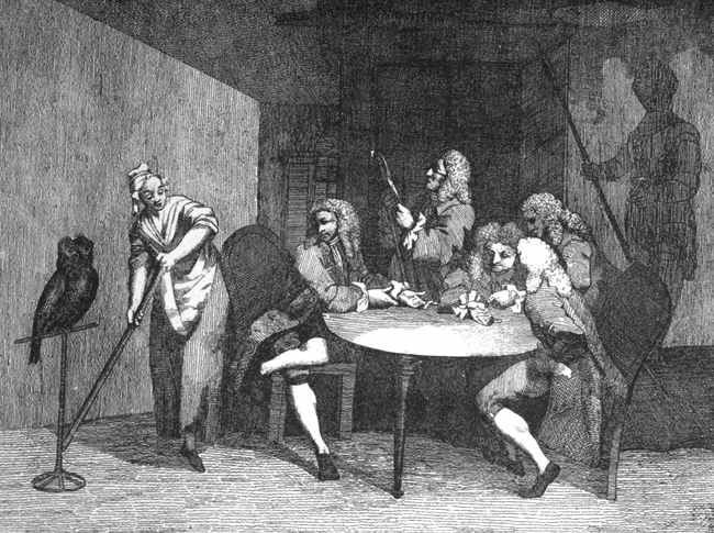 [111] This etching is so nearly a fac-simile of the original, that when it was brought home Hogarth mistook it for his own drawing, which, considering of no value, he threw into the fire, whence it was snatched by Mrs. Lewis, though not before the paper was scorched.