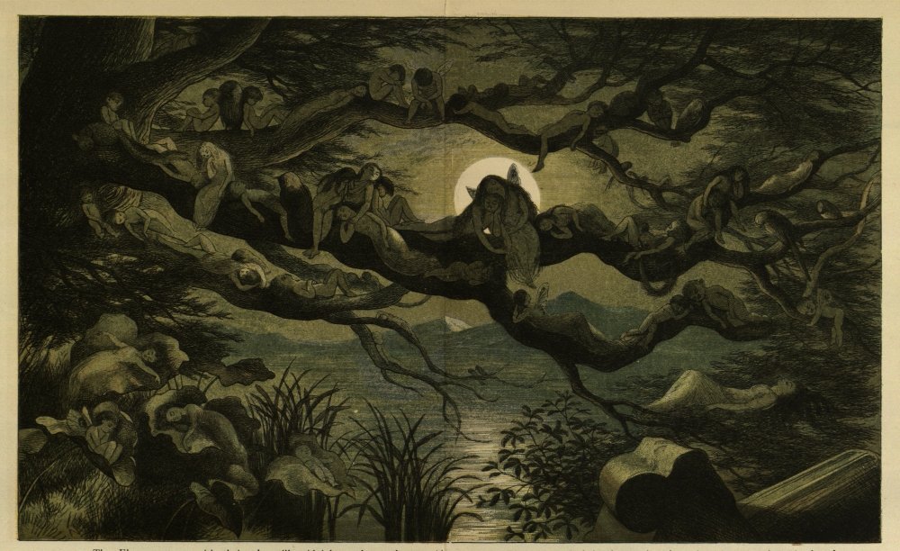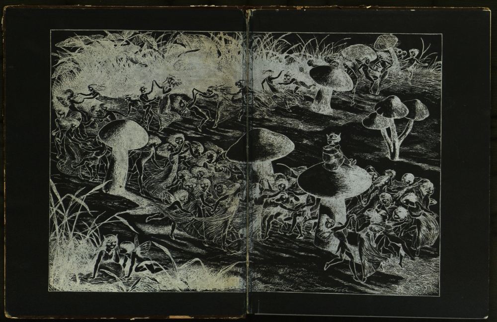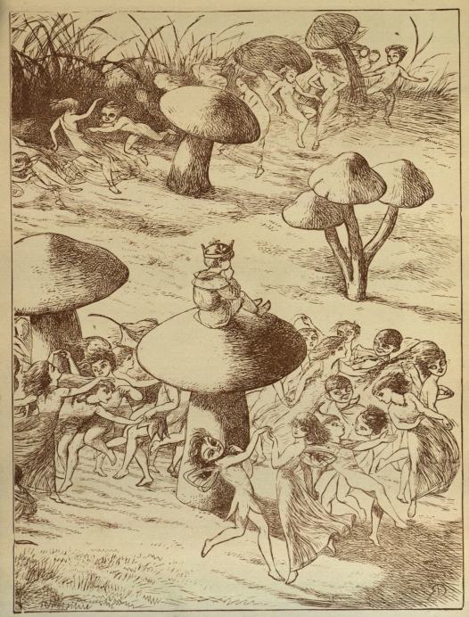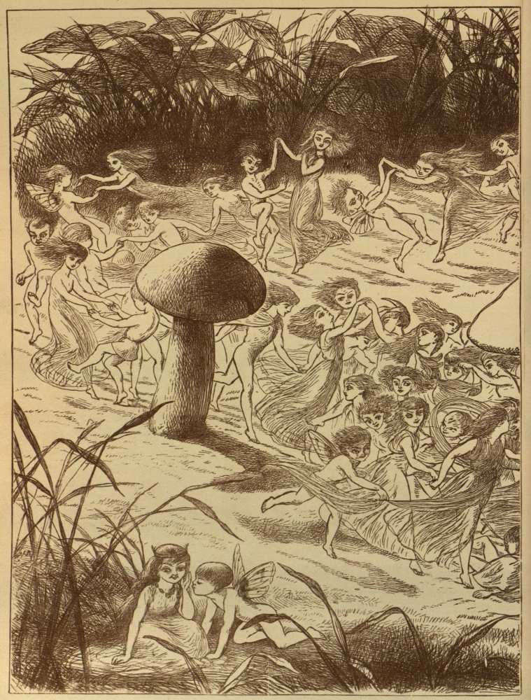 Now the Elves covered every branch of the tree, as you see in the picture, and the Fairies did not know where to lie down. At last they decided to lie down under a very big Mushroom.{35}