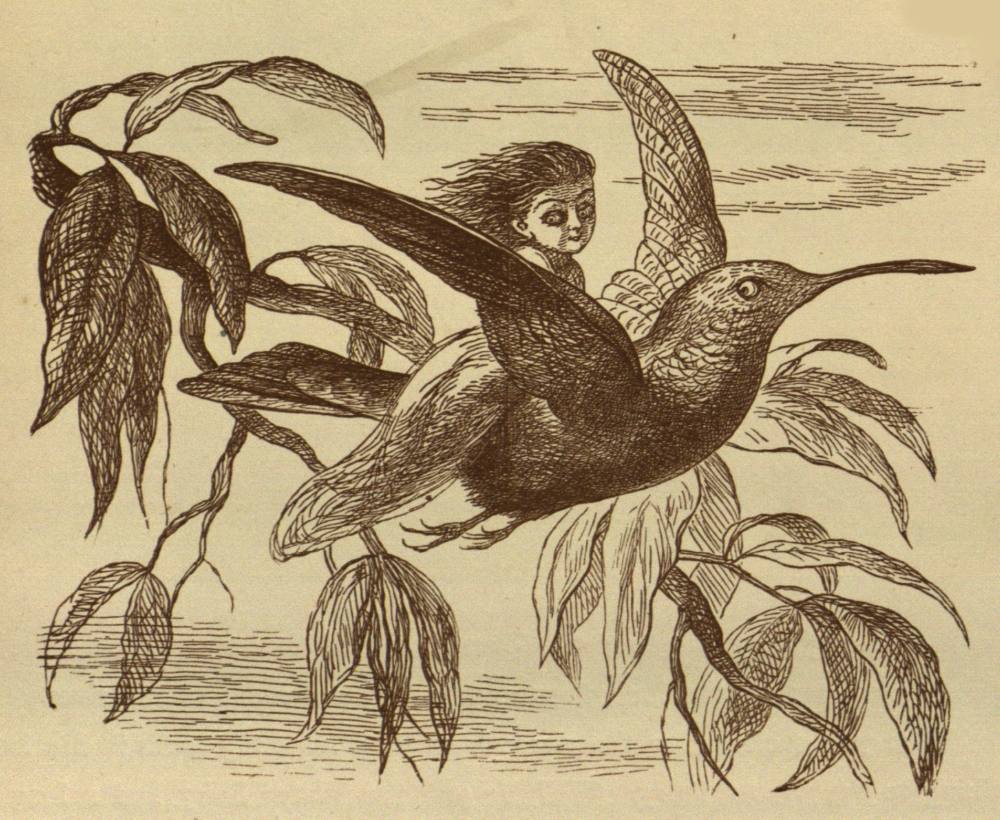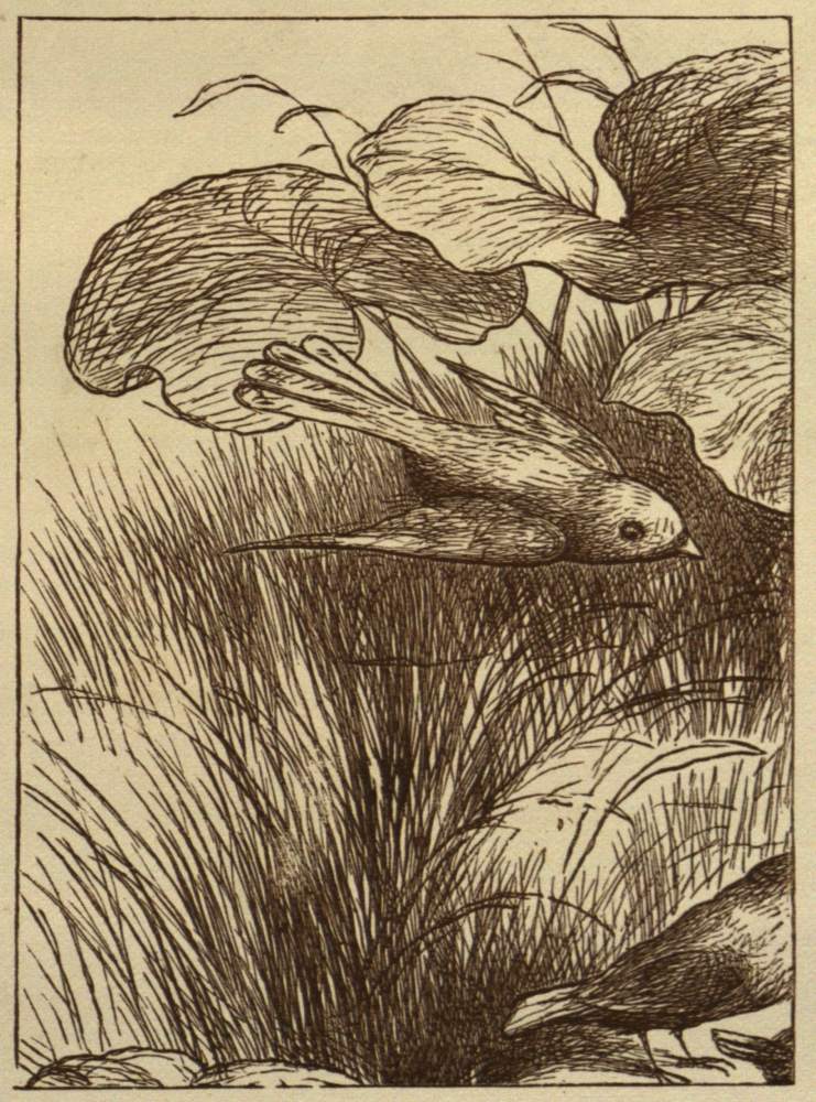 Then the poor mother and father cried dreadfully, but they saw there was no hope. It was better that the Princess should vanish away, than that she should be married to a horrid rude Dwarf, who rode on a Frog. So they sent for the Princess, and kissed her, and embraced her, and wept over her, and (gradually she faded out of their very arms, and vanished clean away) then she flew away on the bird’s back.