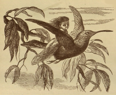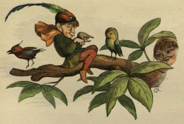 Now, one morning, the Princess awoke very early, but she felt so happy that she could not sleep. She lay awake and listened to the Birds singing, and then she watched a Fairy-boy teasing a Bird, which sang (so the boy said) out of tune, and another Fairy-baby riding on a Fly.
