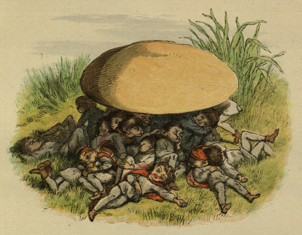 Now there were no houses, and not many trees, in Mushroom Land, and when night came all the Princes wanted to lie down under a very big Mushroom.