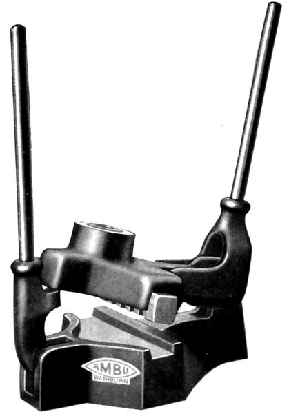 Made of two stout pieces of hard wood pivoted to each other and mounted on ball bearings. It is also handy for working on heavy generators and starting motors.