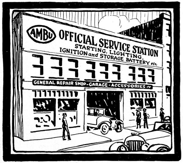 To secure a franchise for an Official Ambu Service Station is to have greater prestige and earn more and bigger profits. Automobile owners from Coast to Coast know that the Official Ambu Service Station sign on a garage, repair shop, battery or electrical Service Station stands for the highest degree of efficiency in electrical repair work. To maintain this reputation AMBU Franchises are given with care. If you are not now qualified—we have a plan that will give you the necessary knowledge.