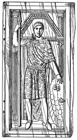 The Nicene creed was cut in silver by order of Pope Leo III., and in the East strips of metal have constantly been substituted for the long thin pieces of palm leaf which formed the normal books. The metal leaves are found of gold, silver, or gilded copper particularly. The plates are quite thin, and the characters upon them are generally engraved, but sometimes they are chased with tracer and hammer. Such records are not only very permanent but they are also very decorative. The modern engraving of inscriptions on metal has mainly found refuge in monumental brasses, and in this case the letterings are usually run in with some pigment.