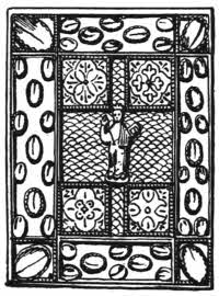English clog almanacks are squared pieces of wood, measuring from about two feet to nine or ten inches in length, and the larger ones are sometimes as much as three inches square. They are notched along the angles, small notches without ornamentation indicating week days, big notches stand for Sundays, and Saints days have all kinds of ornamental flourishes, which now and then show familiar forms such as Saint Catherine’s wheel and Saint Lawrence’s gridiron.