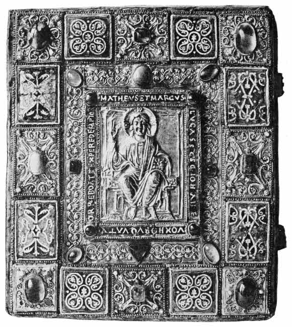 | 1. GOLDEN BINDING OF “THE GOSPELS OF CHARLEMAGNE,” WITH JEWELS AND ENAMELS, 11TH OR 12TH CENTURY. (See p. 54) | Frontispiece |
