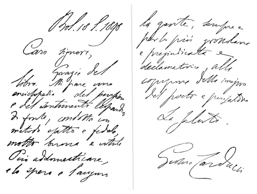 Grazie del libro. Mi pare una enciclopedia del pensiero e del sentimento leopardiano di fonte, condotta con metodo esatto e fedele, molto buona e utile.