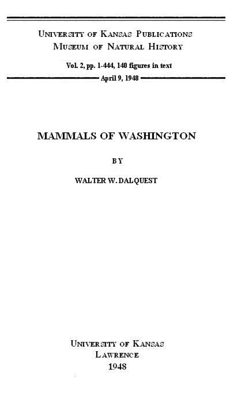 | 1929. | Provisional list of the land mammals of the state of Washington.
