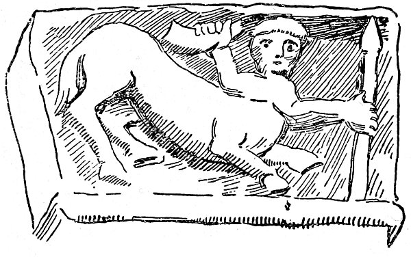 Sala IX.—The Sala degli Scarlioni—of the Zigzags—painted with red and white stripes, contains sculpture of the rather later period of il Bambaia and Fusina. Here is Bambaia’s famous work, the recumbent statue of Gaston de Foix, from the hero’s monument in Sta. Marta, which was broken up and sold at the demolition of that church. The head is of classic beauty, and the whole figure shows a depth and sincerity of feeling to which we are hardly accustomed in this able but usually cold and uninspired artist. There are smaller fragments of the decoration of the same tomb on a stand close by. The casts in the cases are from reliefs also intended for this monument and now dispersed in various collections; they show in the detached style of the ornamentation and the confused design, a desire for novelty, unrestrained by artistic feeling. There are other works by this master, some of a classic grace, besides a number of other interesting things.