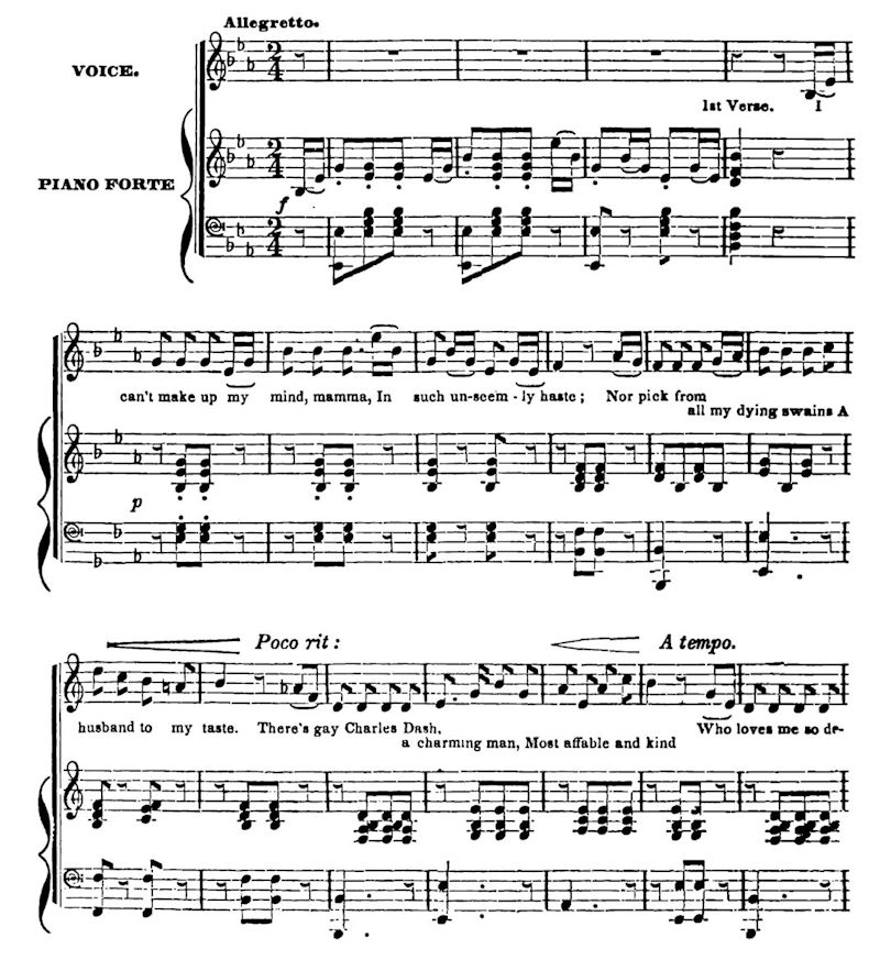 The regular visiter at these times is a black-eyed, cherry-cheeked cousin from Baltimore, a little given to flirting and dangerously fascinating, as graceful as a young fawn, and as frolicksome as a kitten. She always appears to have come down purposely for a romp, having left city affectations at home, and brought her graces with her. Then she wont go home until she has half a dozen of her cousins—from the third to the sixth remove—desperately in love with her, to keep them in mind of Cape May.
