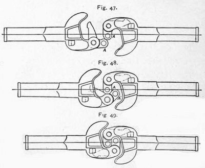 | The Possibilities of Destruction in the Great Speed of a Locomotive—The Energy of Four Hundred Tons Moving at Seventy-five Miles an Hour—A Look ahead from a Locomotive at Night—Passengers Killed and Injured in One Year—Good Discipline the Great Source of Safety—The Part Played by Mechanical Appliances—Hand-brakes on Old Cars—How the Air-brake Works—The Electric Brake—Improvements yet to be Made—Engine Driver Brakes—Two Classes of Signals: those which Protect Points of Danger, and those which Keep an Interval between Trains on the Same Track—The Semaphore—Interlocking Signals and Switches—Electric Annunciators to Indicate the Movements—The Block Signal System—Protection for Crossings—Gates and Gongs—How Derailment is Guarded Against—Safety Bolts—Automatic Couplers—The Vestibule as a Safety Appliance—Car Heating and Lighting. | |