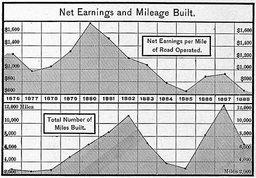 | Railway Mileage of the World—Railway Mileage of the United States—Annual Mileage and Increase—Mileage Compared with Area—Geographical Location of Railways—Centres of Mileage and of Population—Railway Systems—Trunk Lines Compared: By Mileage; Largest Receipts; Largest Net Results—Freight Traffic—Reduction of Freight Rates—Wheat Rates—The Freight Haul—Empty Freight Trains—Freight Profits—Passenger Traffic—Passenger Rates—Passenger Travel—Passenger Profits—General Considerations—Dividends—Net Earnings per Mile and Railway Building—Ratios of Increase—Construction and Maintenance—Employees and their Wages—Rolling Stock—Capital Invested. | |