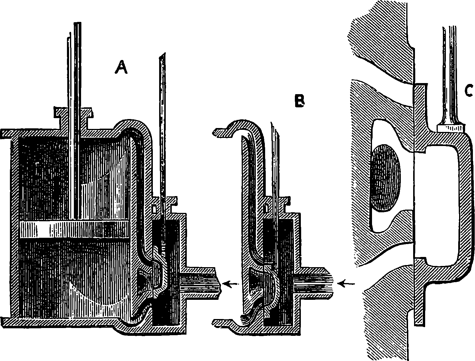 Dr. Joule arranged paddles of brass or iron, so that they could turn freely in a circular box containing water or quicksilver. From the sides of the box partitions projected inwards, which contained openings that permitted the divided arms of the paddle to pass, and preventing the liquid from 805moving en masse, thus caused a churning action when the paddle was turned. Now, every one who has worked a rotatory churn knows that a considerable resistance is offered to this action; but every one does not know that under these circumstances the liquid becomes warmer. It was Dr. Joule’s object to discover how much the temperature of his liquid was raised by a measured quantity of work. He used very delicate thermometers, and had to take a number of precautions which need not here be described; and he obtained the definite quantity of work by the descent of a known weight through a known distance, a cord attached to the weight being wound on a drum, which communicated motion to the paddle. The experiments were conducted with varying circumstances, to avoid chances of error, and were repeated very many times until uniform and consistent indications were always obtained. The result of the experiments showed that 772 units of work (foot-pounds) furnished heat which would raise the temperature of 1 lb. of water from 32° to 33° F., which is the unit of heat. This number, 772, is a constant of the greatest importance in scientific and practical calculations, and is called “the mechanical equivalent of heat.” The amount of work it represents is sometimes called a “Joule,” and is always represented in algebraical formulæ by “J.” Mr. Joule’s first paper appeared in 1843, and soon afterwards various branches of the subject of “The Equivalence and Persistence of Forces” were taken up by a number of able men, who have advanced its principles along various lines of inquiry. Among the most noted contributors to this question we find the names of Sir William Thomson, Helmholtz, James Thomson, Rankin, Clausius, Tait, Andrews, and Maxwell.