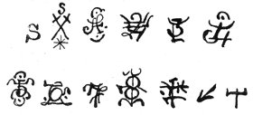 The Salopian Porcelain Works were founded by Thomas Turner, of Caughley Place, who had been employed in the Worcester factory, and becoming manager of the pottery works at Caughley, near Broseley, in 1772. To him are attributed the famous “willow pattern,” the “Nankin” and the “blue dragon,” and the production of the beautiful and distinguishing dark blue colour; Thomas Minton, of Stoke, assisted in the completion of the “Nankin,” being an articled engraver at Caughley. Of Turner the Messrs. John Rose bought the factory in 1799, and in 1814-15 it was broken up. This was a grievous loss, as the porcelain produced there was remarkable for the brilliancy of its glaze, the fineness of its substance, and the beauty of its blue colour. The name “Salopian” indicates its origin, but several other marks of very elaborate designs were employed, being a series of Arabic numerals, as here given, although some slight varieties are noticeable in the different illustrations published.