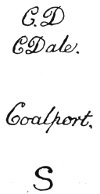 John Rose, an apprentice of Thomas Turner, of Caughley, Salop, was also the founder of the Coalport and Colebrook Dale, Shropshire, manufactories, and after a time, having purchased the Caughley plant, he united the latter with Coalport, Swansea and Nantgarw factories; the paste of Coalport was a combination, and “felspar porcelain” was produced. Turner’s “willow” and “blue dragon” designs were again resuscitated to a great extent, and various sprig patterns, copied from Chelsea, Dresden and Sèvres porcelain, as well as bearing their marks. Besides these latter, the names and initial letters of the original factories are found on the early examples, and the more recent bear the marks next here following.
