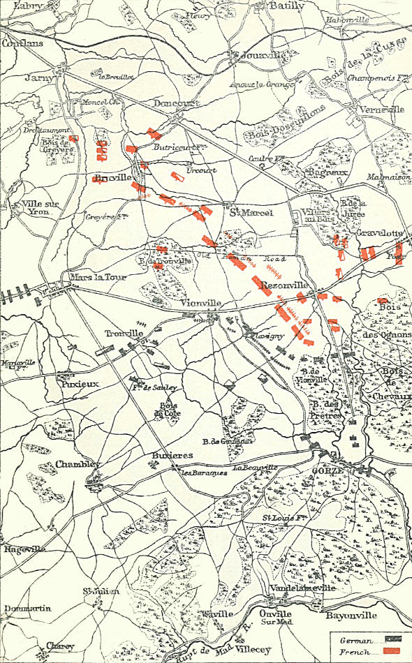Vionville-Mars la Tour—The Vionville Battlefield—The French are Surprised—The Third Corps Strikes In—Arrival of Bazaine—Bredow’s Brilliant Charge—The Fight becomes Stationary—Arrival of the Tenth Corps—The Great Cavalry Combat—End of the Battle
