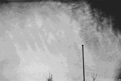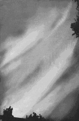 The action of the mirror is to a large extent due to mere diminution of brightness, but it also partly extinguishes the blue light of the sky without exerting any such influence on the white light from[174] a cloud. This is due to the fact that the blue light of the sky is partly polarized, while that reflected from the cloud is not. Now, polarized light which falls upon a black mirror held in a particular position is not reflected by it. This position depends upon various circumstances, but one condition is that the reflected ray must make an angle of about 33 degrees with the surface of the glass. The amount of the polarized component of the blue light varies greatly, but is at a maximum at all points 90 degrees away from the sun. This, then, is the best possible position for photographing a cloud, as the whole of this polarized component may be suppressed by adjusting the mirror to the proper position, and then the most delicate cirrus fibres stand out brilliant on an almost black background.
