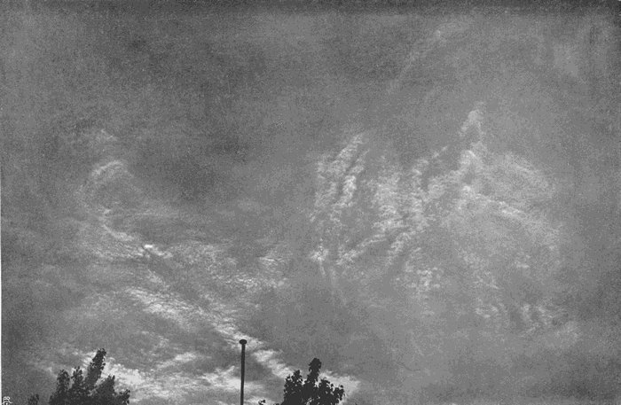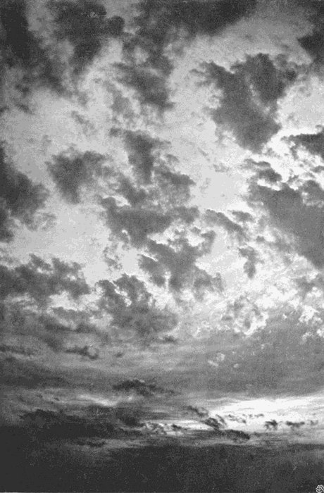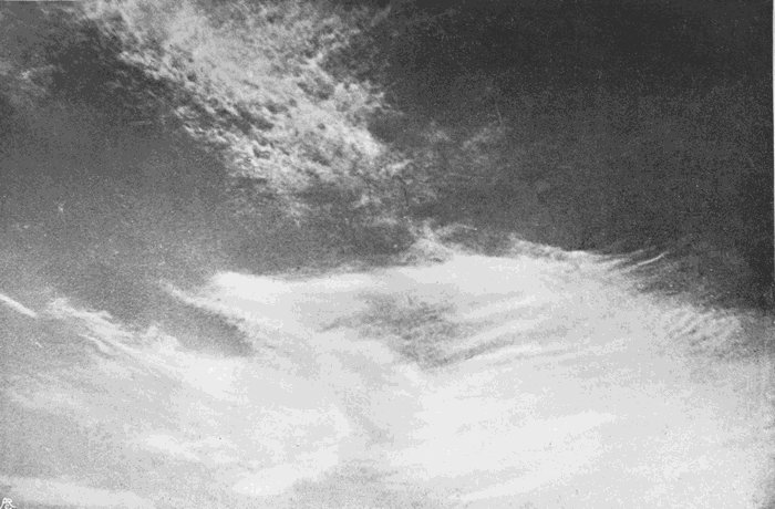 There is no difficulty whatever in securing excellent photographs of heavy grey clouds, or of clouds which stand out dark against a twilight sky. Any camera and any plate can be used, and in an experienced hand will ensure success after a few trials, but except under these special conditions, cirrus, in all its varieties, the alto clouds, and even[166] many of the lower ones, present a real difficulty due to two causes. In the first place, they and their surroundings are so brilliant that a very short exposure is sufficient, far shorter than would be needed for a sunlit landscape; and in the second place, the actinic value of the light they reflect is very little greater than that received from the background of blue sky. When so minute a difference comes to be represented in the monochrome of the ordinary photograph, the eye fails to appreciate it, and all the finer details are lost.
