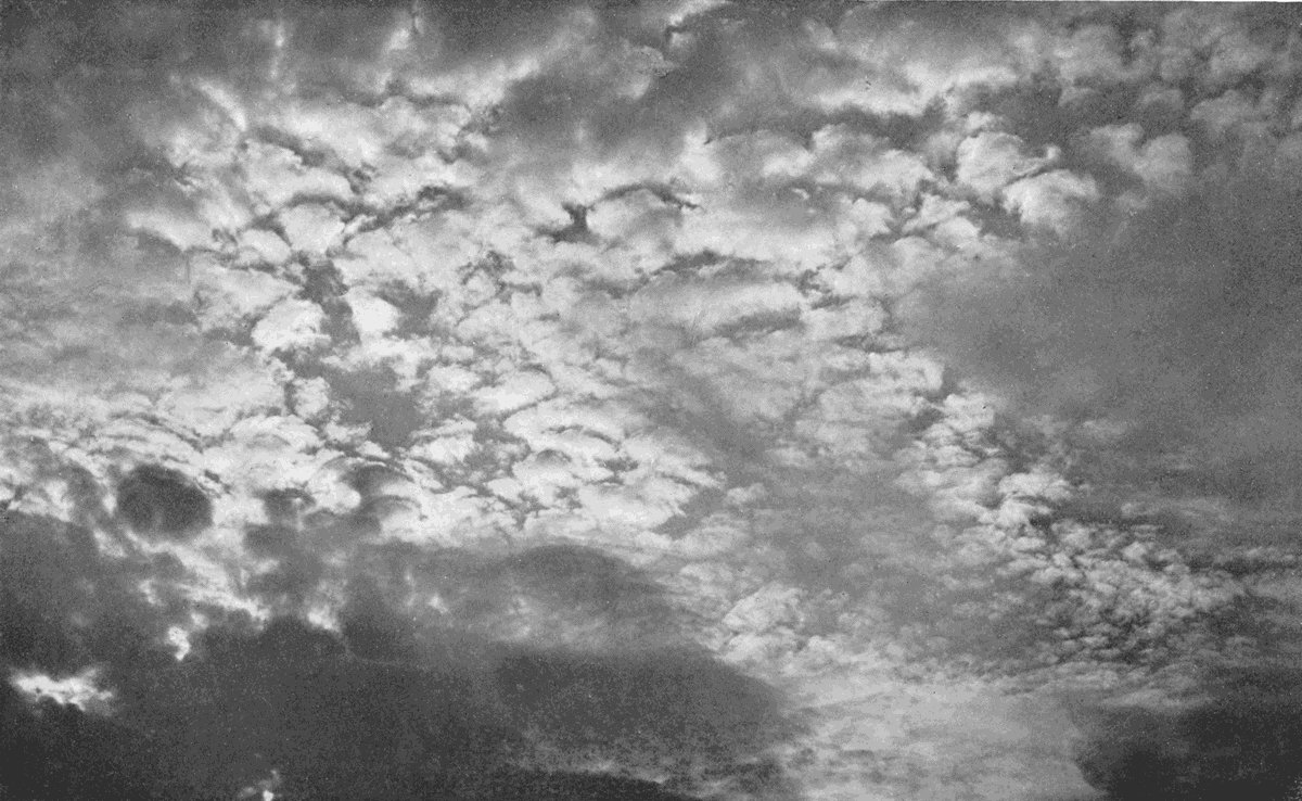 To the meteorologist I hope the following pages may prove not only of some interest, but of practical value as a small step towards that greater exactness of language which is essential before we can attempt to explain all the details of cloud structure, or even interchange our ideas and observations with adequate precision. The varieties depicted and described have been selected from many hundreds, as those which seem to me to show such differences of form as to imply distinct differences in the conditions to which they are due. I have not attempted to deal with the physical causes of condensation except in a general way, being unwilling to introduce diagrams of isothermals and adiabatics and such purely scientific methods into a work also intended for a wider public. For those who wish to pursue this part of the subject I have appended a list of papers from the[vi] Quarterly Journal of the Royal Meteorological Society and other sources, which may serve as references. I also hope that some more votaries of the science may be induced to realize that meteorology does not consist solely of the tabulation of long columns of records, but includes subjects for investigation as much more beautiful as they are more difficult.