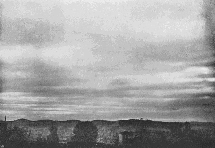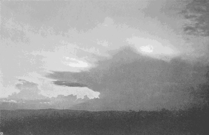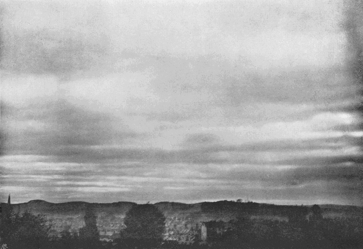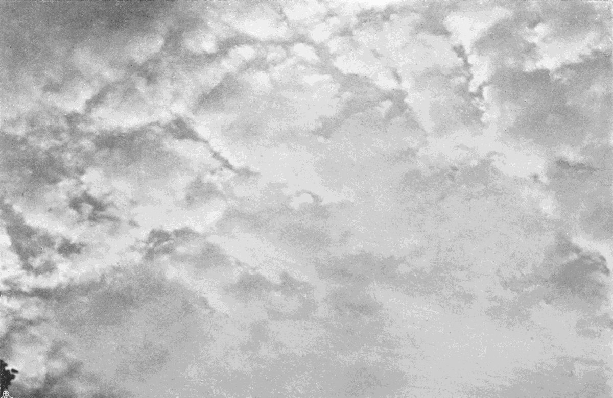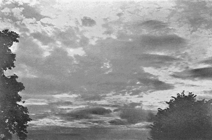 If no image appears after about forty seconds, add more ammonia as above described, and leave for another forty seconds, and so on, until by this method of trial the right quantity of alkali for the[177] particular exposure has been ascertained. The development must never be hurried, or the background of sky will blacken too soon, and in some cases it may take a quarter of an hour or more to get enough density on the cloud. But as a general rule the image is fully out in about two minutes, and the plate is then washed and fixed in the usual way.