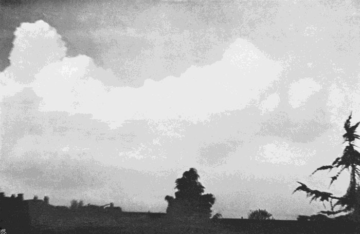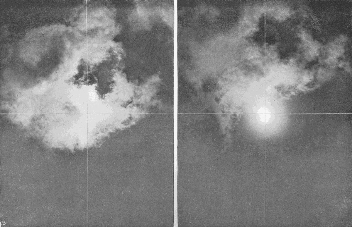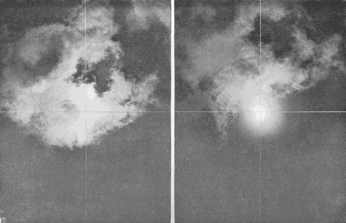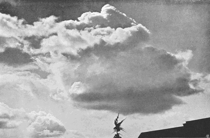 There are four ways in which this can be done—by using a slow-acting plate, by lessening the aperture of the lens, by putting some transparent screen in front of the lens to shut off some of the light, and, finally, by pointing the camera, not at the cloud itself, but at its image in a black mirror.