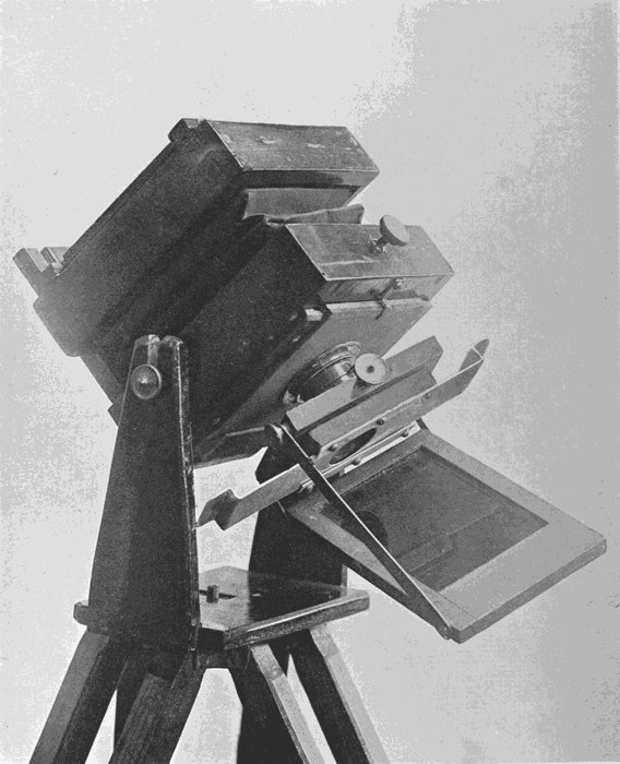 Many of the most delicate of the photographs reproduced here have been taken with a camera of peculiar pattern, the structure of which is shown in Plate 61. The lens is an ordinary rapid rectilinear,[172] and the stop used was generally one-sixteenth of the focal length. The shutter is a light slip of aluminium, which can be drawn across from side to side at any desired pace. The body of the camera is mahogany, with a bellows part for getting correct focus, but when once this was obtained the back was clamped to the tail-board and a little varnish brushed over the clamping screws.