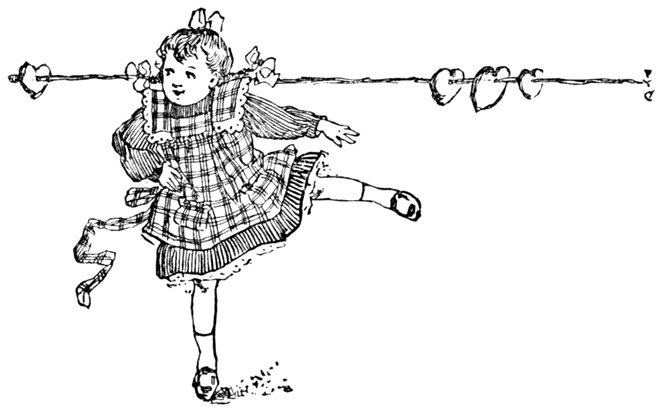 As she had expected, Eddy inclined to play “Tripping lightly as we go.” His conception of the process implied in the song was a laborious jumping up on one toe and down on the other. This exercise he would keep up till the crack of doom if undiverted from it. When induced to stop, he signalled to Joseph Zukoffsky to take his place. Joseph, on being tunefully implored to produce something new in the way of a game, declared for “Did you ever see a laddie?” and the ring started in blithely: