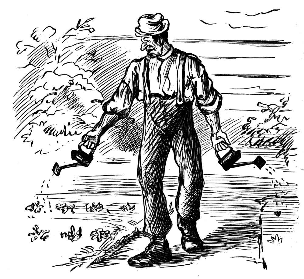 I am great on gourds; they are my specialty. I will undertake to grow them against the world, and will meet Jonah in a fair field, and no miracles, any time; in fact, I am a perfect Jonah on gourds. In early youth, when my gardening was confined to a city yard, my gourds were the first, and fattest, and yellowest to be seen; and, from that remote period to the time of which I speak, I had always felt an affection for the beautiful fruit, and wondered why Nature did not put more in it. Of course there must be gourds in my garden, in spite of their being a useless production and very hollow—Weeville made a joke about their beating other fruit all hollow—and, except to make fragile water-dippers (which, by the way, no one ever makes of them), quite worthless; so I not only planted the seeds in the open garden, but forced some in the hot-beds.