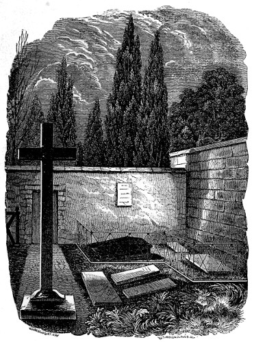 In the quiet Picpus Cemetery, in France, in a small enclosure, the green grass is growing over the headless trunks of more than one thousand illustrious victims guillotined at the Barrière du Trône, during the Reign of Terror, and thrown together in this common grave, called the Cimetière des Guillotinés. Near by this memorable spot is La Fayette’s tomb, and by his side sleeps his heroic wife. No grand monument rears its stately head over their remains; nor is it needed. In letters of gold are inscribed upon the black marble tablet, which marks the last resting-place of Liberty’s Knight, the appropriate motto: “Requiescat in Pace.”