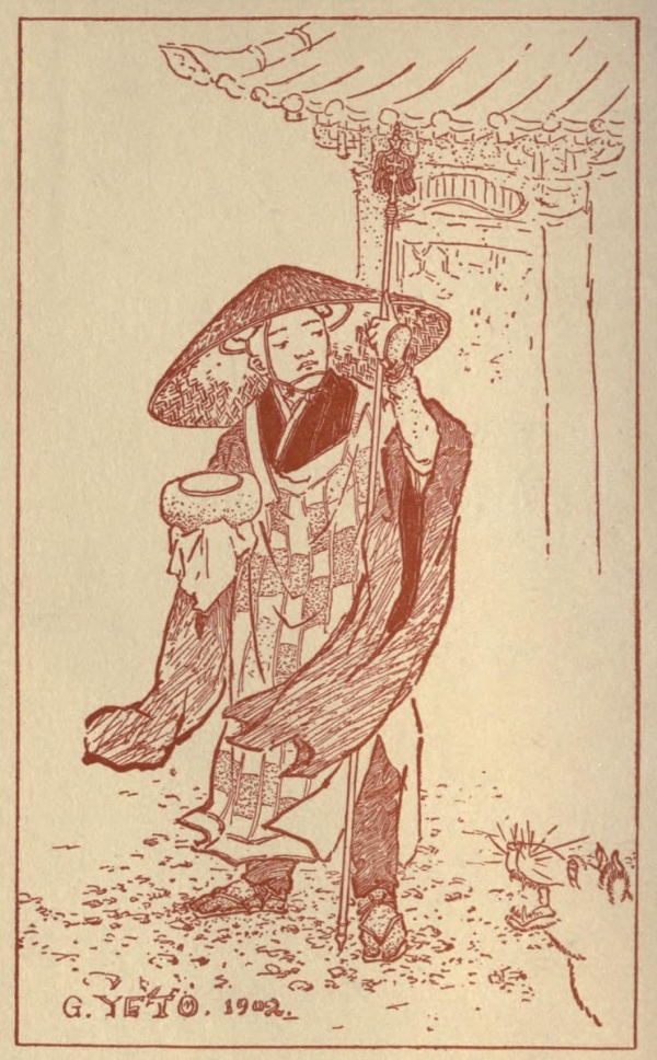 Once there lived upon the mountain called Atagoyama, near Kyoto, a certain learned priest who devoted all his time to meditation and the study of the sacred books. The little temple in which he dwelt was far from any village; and he could not, in such a solitude, have obtained without help the common necessaries of life. But several devout country people regularly contributed to his maintenance, bringing him each month supplies of vegetables and of rice.