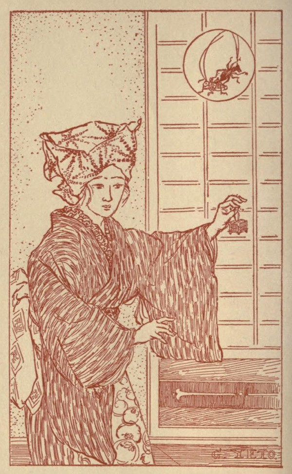 Last evening—the twenty-ninth of the eleventh month—an odd feeling came to me as I sat at my desk: a sense of emptiness in the room. Then I became aware that my grass-lark was silent, contrary to his wont. I went to the silent cage, and found him lying dead beside a dried-up lump of egg-plant as gray and hard as a stone. Evidently he had not been fed for three or four days; but only the night before his death he had been singing wonderfully,—so that I foolishly imagined him to be more than usually contented. My student, Aki, who loves insects, used to feed him; but Aki had gone into the country for a week's holiday, and the duty of caring for the grass-lark had devolved upon Hana, the housemaid. She is not sympathetic, Hana the housemaid. She says that she did not forget the mite,—but there was no more egg-plant. And she had never thought of substituting a slice of onion or of cucumber! ... I spoke words of reproof to Hana the housemaid, and she dutifully expressed contrition. But the fairy-music has stopped; and the stillness reproaches; and the room is cold, in spite of the stove.