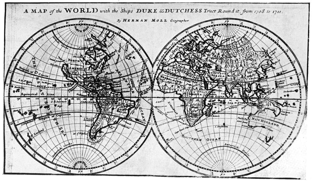 The most noteworthy was undoubtedly Captain William Dampier,[10] then in his fifty-sixth year, who sailed under Rogers as “Pilot for the South Seas.” The choice was a wise one, for probably no man living had a wider experience in those waters, having been there three times before, and twice round the world. To the Spaniards his name was second only to that of Drake, a formidable asset in a voyage of this kind. That he should have consented to serve under a much younger{xi} man is sufficient testimony of the regard and esteem in which he held Woodes Rogers.
