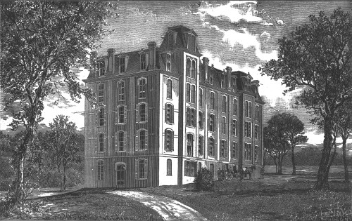 As to its material, it is a large brick building with stone trimmings, 104 feet in length, 42 feet in depth, and five stories high. It has a dining hall, a beautiful and airy school-room about 37×48; three large recitation rooms, with other smaller ones, which are probably the most complete in their appointment of blackboards, maps and desks of any in the State. No one who has visited the Institution has been heard to question this. It may be added, also, that the building, as it now stands, is the gift of friends living in the East and West for the education of the colored youth of Texas.