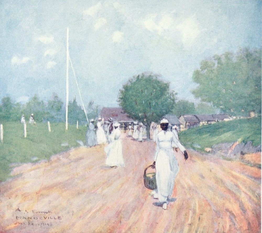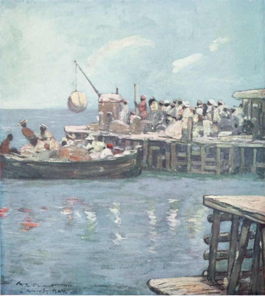 The climate of the island is as nearly perfect as any climate can hope to be. It is a country of perpetual sunshine and blue skies. The heat of the day is tropical, but it is always tempered by cool sea breezes; and when the sun has gone the evenings and the nights are deliciously cool and refreshing. The island is really possessed of many different climates. The towns and villages among the hills on the mountain slopes are always cooler than the cities of the plains. The climate of the place has always been grossly maligned by people of the homeland. On my first journey out to Jamaica I imagined that I should find the place filled with yellow fever and malaria; I thought of it as a sort of West Africa—only a little worse. And I found it the most pleasant and healthy place imaginable. In spite of all the statements and statistics to the contrary, the conservative people of England still believe that a journey to the Queen of the Antilles includes the risk of yellow jack. Fevers there are, of course, just as in England there are coughs and colds; and I would choose a Jamaica fever before an English cold. Yellow fever is a disease which attacks you when you least expect it, and leaves you quite dead, or nearly so. It is an uncanny, unwholesome thing, and is not a respecter of persons. Really, for all practical purposes, Jamaica is free of yellow fever; the disease has been stamped out. People die of it even to this date; but even England is not entirely free from smallpox.{24} Yet one cannot describe smallpox as one of the characteristics of our little island. In the same way it would be foolish to associate Jamaica with yellow fever.
