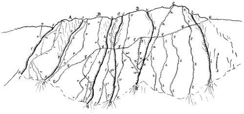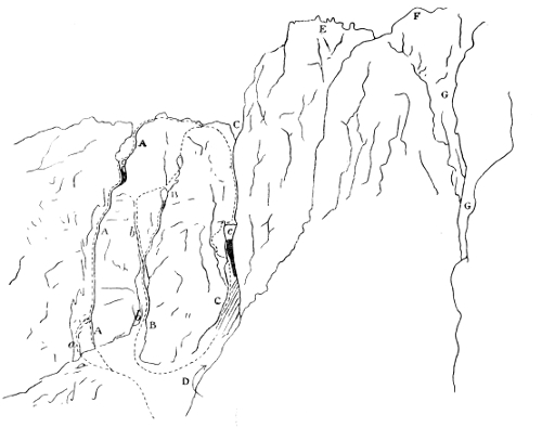 The following Easter he was again among the Lake Mountains, having devoted the Whitsuntide and Christmas holidays of the preceding year to his favourite pursuit, the last mentioned period being spent in North Wales. I hurry over his climbing in the Lake District for the very sufficient reason that in this volume, so characteristic of its author, his work there is described by himself with all the accuracy of a trained scientist, and with all the enthusiasm of an ardent mountaineer. Descriptions of all these climbs were kept by him in numerous small notebooks, full of neat shorthand with dates, proper names, &c., written in, and with occasional pen and ink sketches of his routes up crags and gullies to illustrate the shorthand notes. Full of mournful interest are these touches of a vanished hand, these silent echoes of a voice that is still.