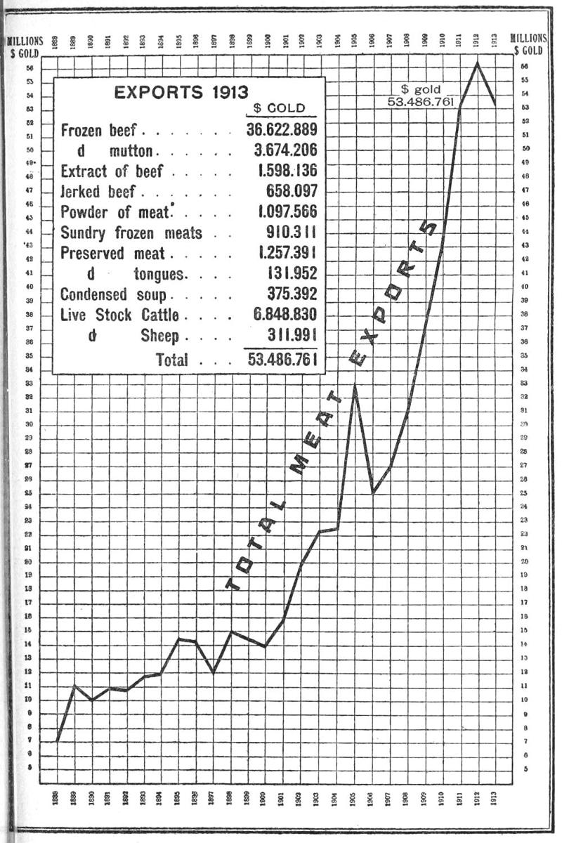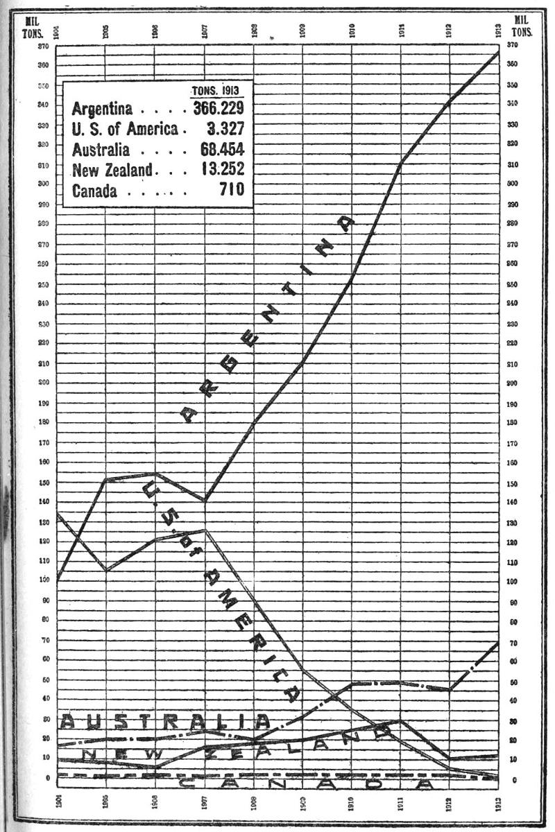 | The “History of Belgrano”—The first horses on the River Plate—The Goes’ cattle—The first goats and sheep—Early export trade—The first freezing establishment—Amazing pastoral and agricultural changes—The “discovery” of alfalfa—Sheep—Fine stock—Horses—Pigs and poultry—Tired land—Tabular statistics—Favourite breeds—Comparative absence of disease—British prohibition of import of animals on the hoof—Drought—Water supplies of Uruguay and Argentina—A windmill which was not erected—Fencing—Anglo-Saxon enterprise—The Argentine Rural Society; its herd and flock books—The agricultural and live stock show—Trees—The coming colonist and mixed farming—Tabular statistics—The meat trade: its history from the seventeenth to the present century—Market classification—Predominance of U.S. interests in cold storage industry—Influence of cold storage companies on fine breeding—Tabular statistics | 249 |
