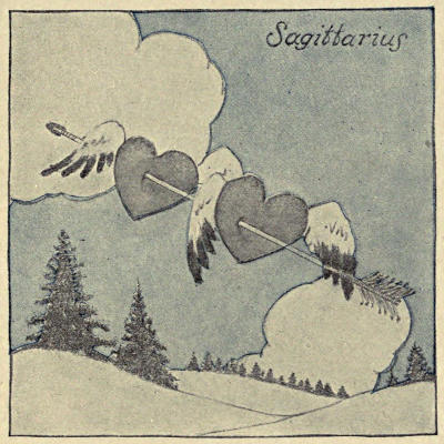 Depression in heart areas, relieved by brief storms which clear the air. A wave of tenderness over all the heart regions, followed by a general warm feeling and the glad ringing of church bells. If you are going to cultivate Matrimony this year, now is the time to begin. Flowery sentiments abound. Increasing warmth produces an atmosphere charged with restlessness in the thickly peopled heart centres. Unsettled weather and clouds, melting away in epistolary showers.