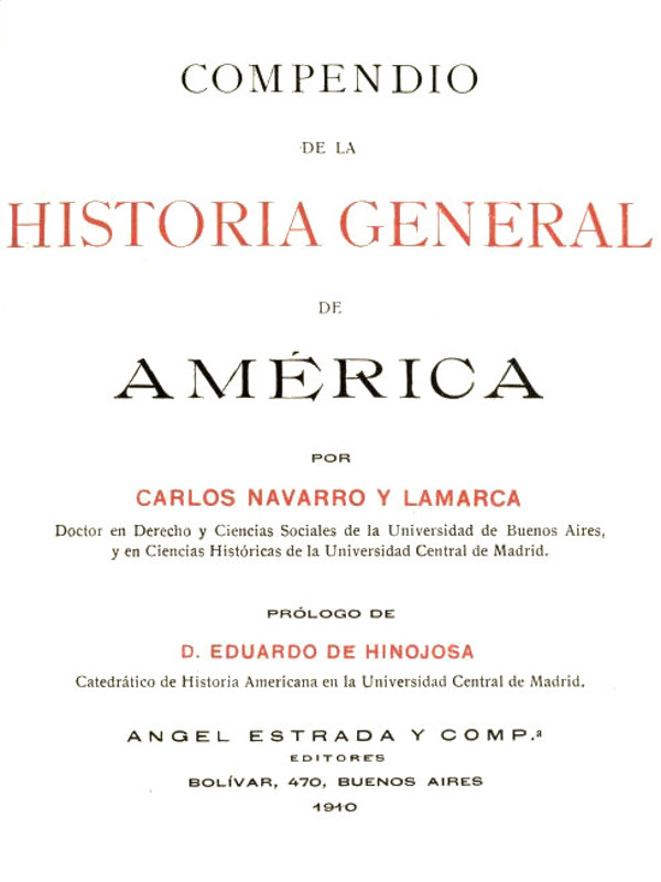 El presente libro es fruto sazonado de una consagración perseverante de muchos años al estudio de la historia de América. El Dr. D. Carlos Navarro Lamarca tuvo á su cargo muy joven aún la enseñanza de esta materia en el Colegio Nacional de Buenos Aires, y escribió por entonces un estimable compendio de ella. Desde entonces ha continuado dedicando á este estudio intensa y fecunda labor, bien reflejada en el tomo I de su nueva obra de historia de América, que ahora ve la luz pública. Revélase en ella gran conocimiento de las fuentes literarias y de las monumentales y dominio de la inmensa bibliografía antigua y moderna relativa al asunto. Con diligencia laudabilísima, ha procurado y conseguido el autor allegar los copiosísimos materiales dispersos en monografías, revistas y publicaciones de Sociedades científicas. La obra es fruto de inmensas lecturas.